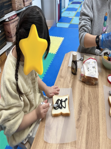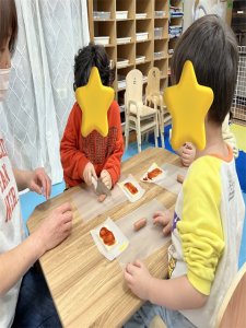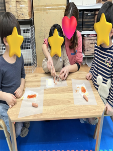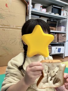 お昼ごはんの時にかわいいサンドウィッチを食べました![]()