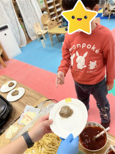 パンに挟んでハンバーガーにする子もいました