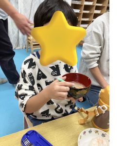 今回のメニューは豚汁、おにぎり🍙、チキンナゲットです🎵