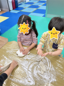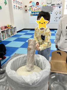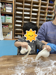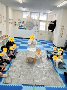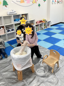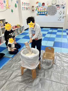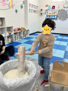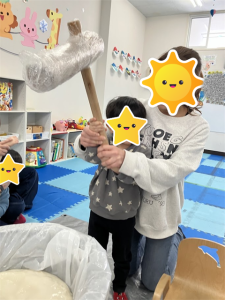 初めてのお友だちも経験した事のあるお友だちもワクワクしながら参加していましたよまずは、餅つきを始める前に餅つきの意味や流れをわかりやすく説明。その後はケガのないように気をつけていざスタート