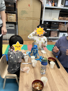 みんなでついたお餅はとても柔らかくて、お雑煮、きな粉餅、あんこ餅にして美味しく頂きました。『あんこがチョコみたいに甘くておいしい~😋』とおかわりするお友だちがたくさん