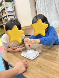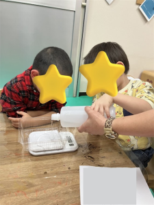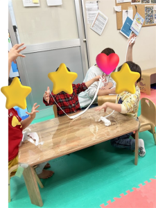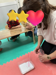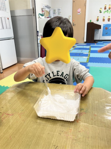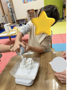 お勉強遊びの活動では、ふわふわスライム作りに挑戦しました!