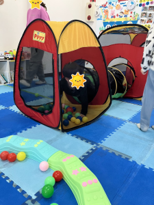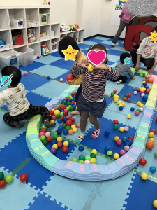 室内活動では大きなボールプールやトンネルでのびのび遊んでいます。