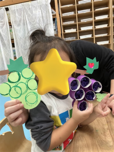 制作の活動では、絵の具やお花紙を使ってぶどうを作りました🍇
